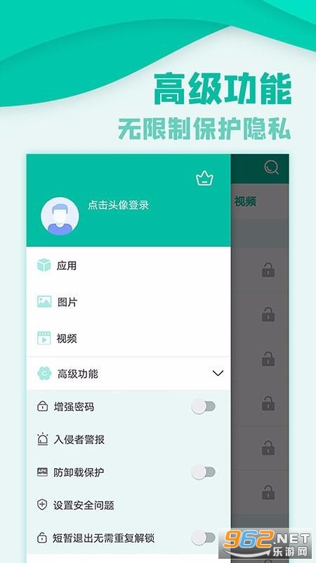 《应用隐私锁官方版》是一款非常给力的手机应用管理工具,这款软件的操作和安装方法都非常简单,而且操作也方便,功能强大,,用户可以通过这款软件给应用加密、图标伪装、设置密码等内容,都是免费的,感兴趣欢迎来962下载体验试试吧!