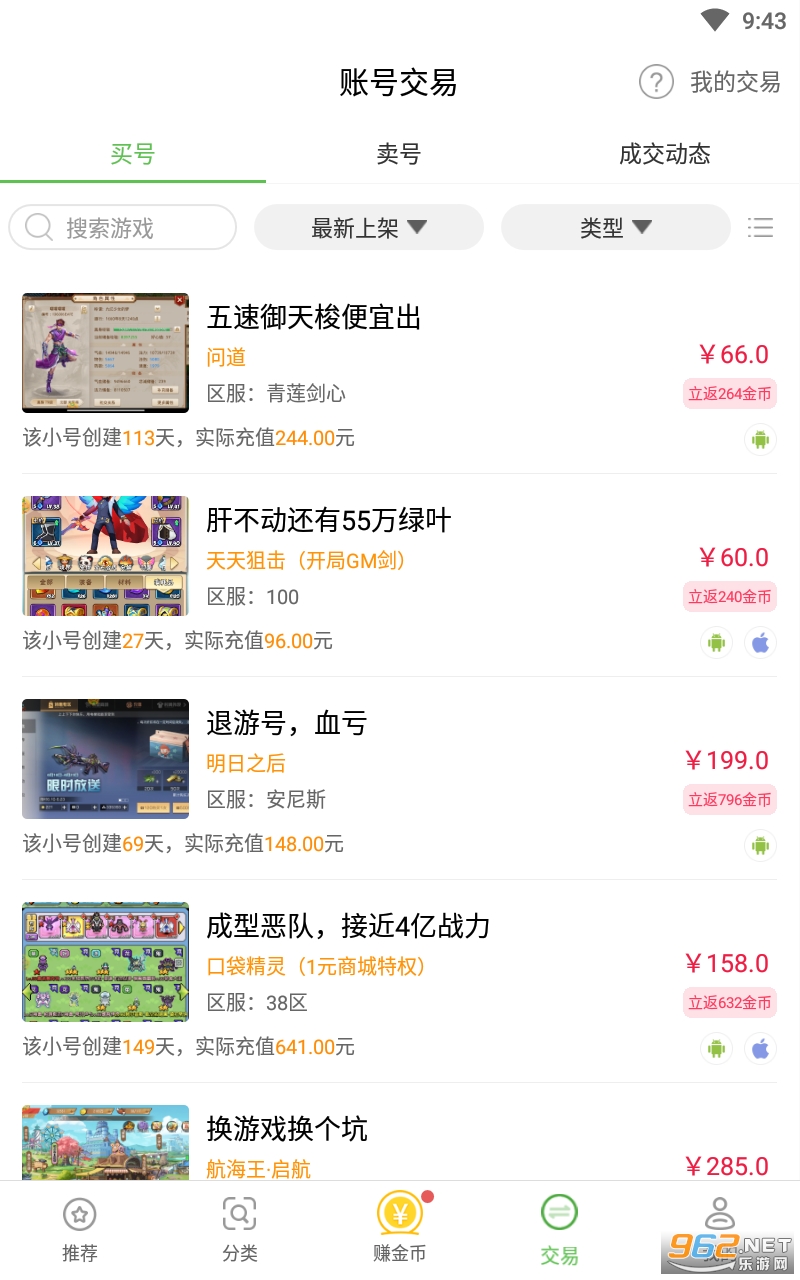 在线账号交易:买号卖号、随时关注成交动态