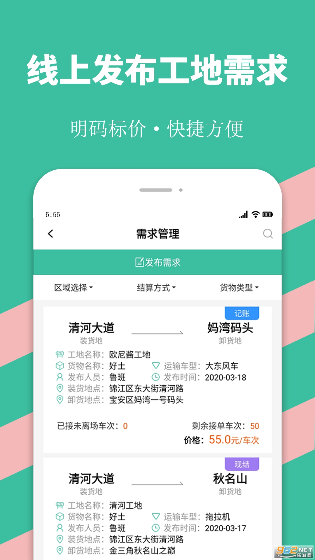 1.施工场地有用车需求,可以直接在线上发布需求量,明码标价就会有很多人接单;