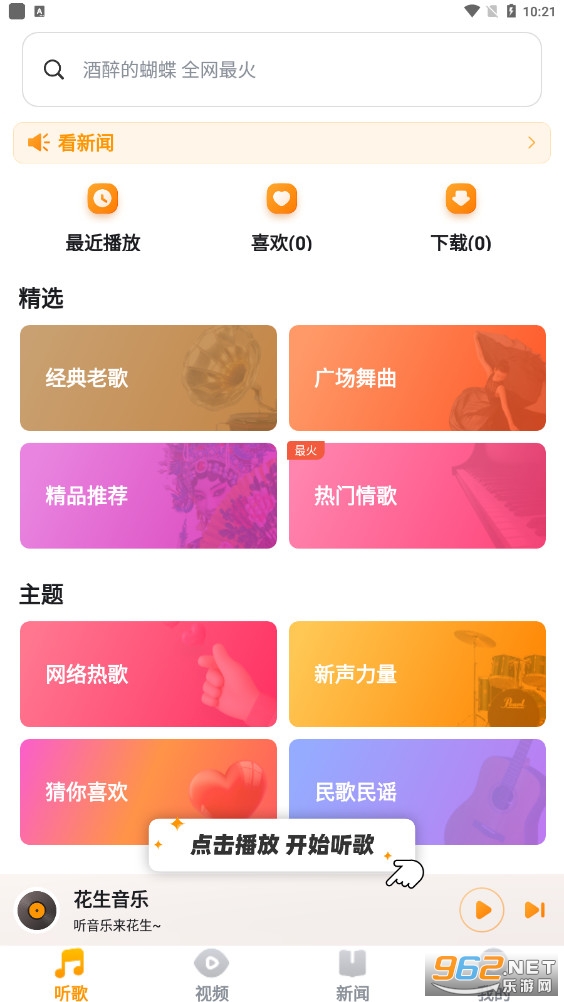 《花生音乐》是一款清新好用的手机音乐播放器软件,通过这款软件你可以享受不同的体验,让你能够愉快的聆听各种音乐,当然一些需要版权的歌曲也是没有的,主要针对于中老年人,还可以观看视频和资讯,非常的便捷。