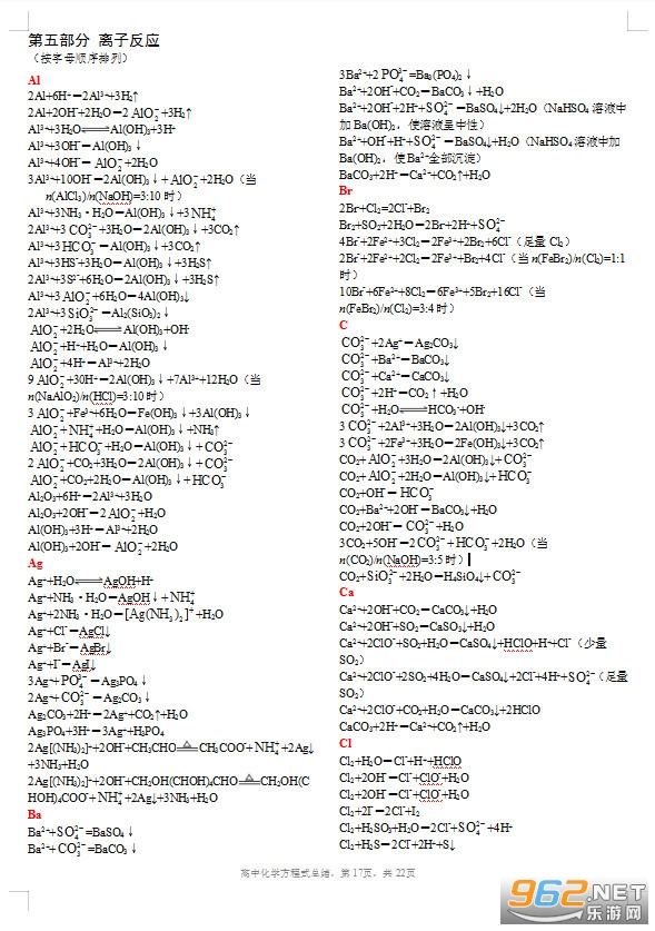 《高中化学方程式及离子方程式总汇》是一款为高中的小伙伴们打造的化学反应方程汇总文档,收录了大量的化学方程式,小伙伴们可以根据目录去查找自己需要的方程式,常见金属、气体等,离子方程、热反应等都可以进行查看,学习公式,加深印象。