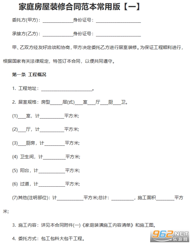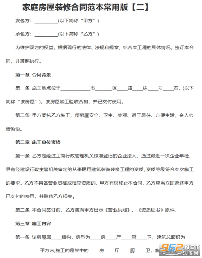 家庭装修必须要签订正规的装修合同才能够保障双方的利益不受侵犯,为大家带来2份比较简单标准的《装修合同电子版》,大家可以根据自己的详细情况进行增减或者修改,直接下载压缩包就能够得到家庭装修合同书样本(完整版)文本,希望能够给大家带来帮助!