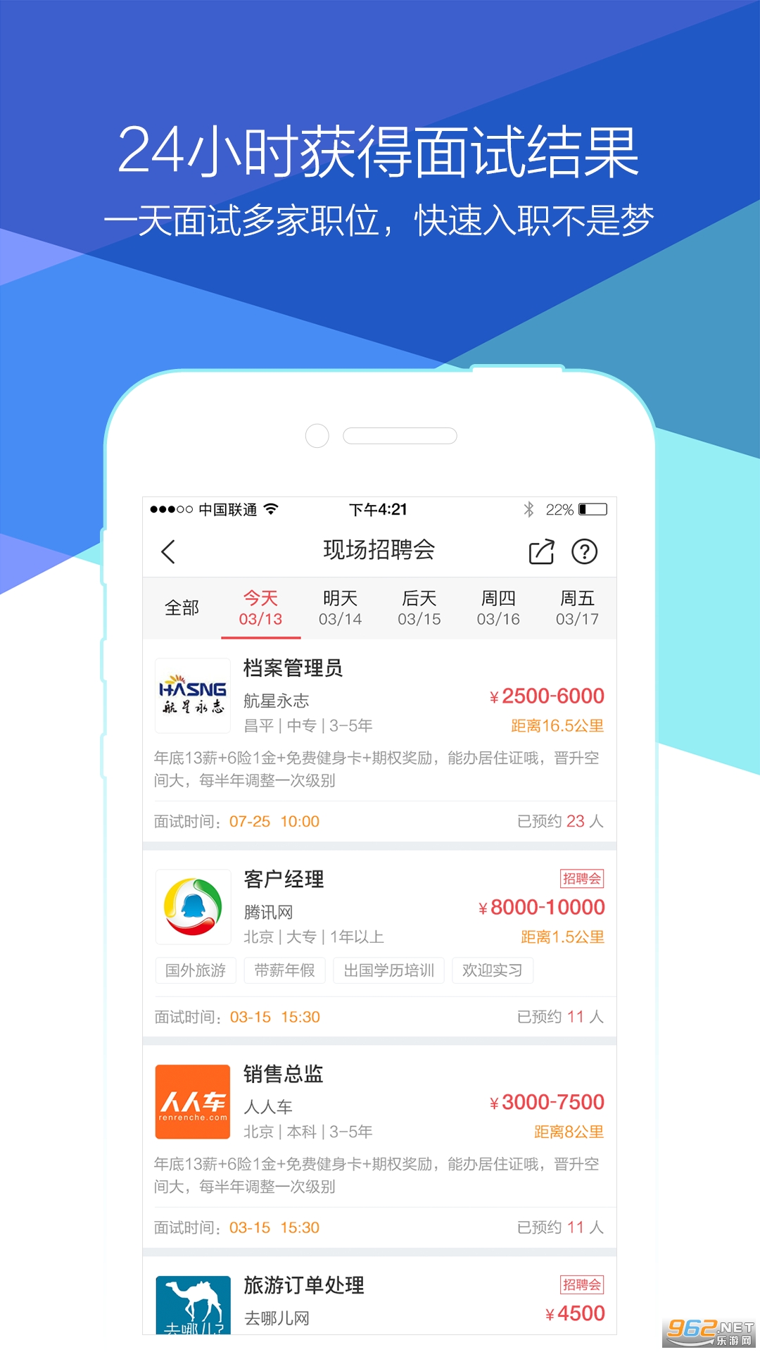 【确保真实】 除营业执照审核外,还需要实名认证,在职证明等一系列资质。极度保护求职者的求职体验!