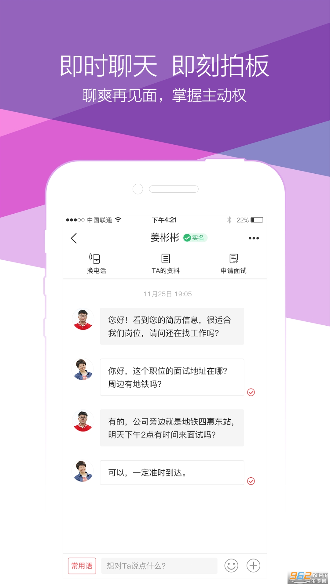 【HR随时在线】 与HR直接聊,了解清楚后再面试。省时省力省车费。
