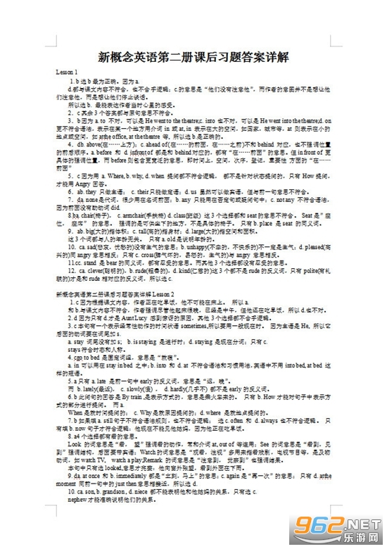 《新概念英语第二册课后答案详解》是一套为朋友们打造的新概念英语第二册课后习题的答案和解析,英语学起来是比较难的,需要朋友们多做多记,一些朋友在做课后习题的时候不知道正确答案是什么,可以在本套文档中进行查看,有着每个题目的详细解答过程。