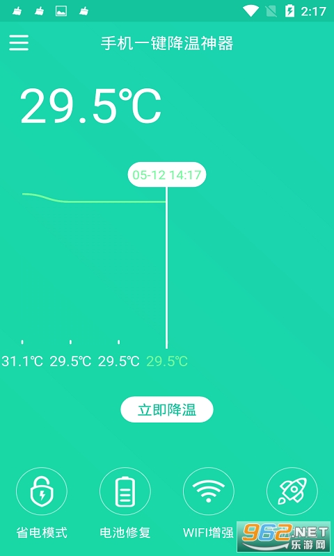 《手机一键降温神器APP》是一款完美给力的手机降温工具,这款软件的操作的操作和安装方法都非常简单,软件提供电池降温医生实时监控手机,高温预警,刷、玩游戏也不怕。而且还是免费的,感兴趣的朋友还在等什么?欢迎来962下载试试吧!