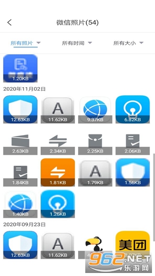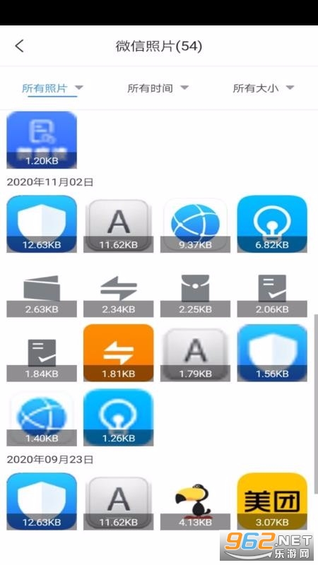 1、提供不同的照片筛选栏目,在照片页面中设置了所有照片、所有时间以及所有大小栏目;