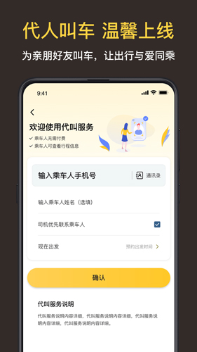 1、打车就用,一键叫车,贴心服务,安全出行。