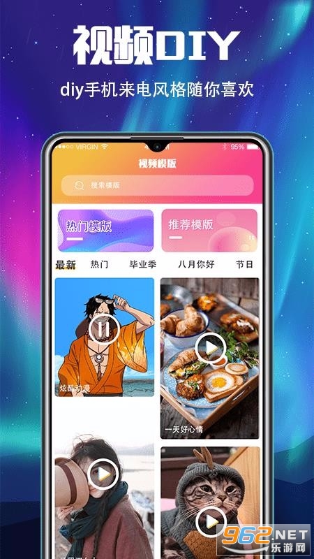 手机铃声来电秀是一个手机铃声设置软件,无论是视频来电秀,还是个性彩铃,都可以在这里进行查找和设置,而且平台汇集了当下热门的歌曲铃声和视频资源,让用户一站式享受丰富的来电视频或来电铃声;相应的系统也按照分类展示了各资源,比如推荐来电、最新来电、热门模板、毕业季、节日等,类型多,板块也丰富,帮助用户清晰浏览需要的铃声,并快速的完成设置,体验个性化的来电秀;相应的该平台结合多种视频编辑功能,让用户便捷的处理各种短视频,轻松打造个性化的来电视频,并用简单的方式体验专业的编辑过程。