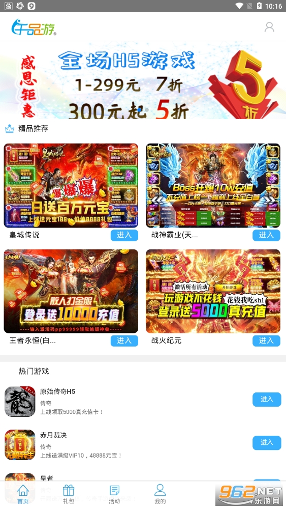 千品游APP是一个非常不错的手机游戏盒子,这里拥有众多热门的H5游戏,让许多喜欢游戏的用户都能在这里玩更多的游戏,这样才可以让用户的到优质的游戏体验;