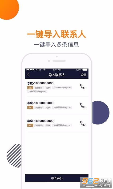 《导入电话本app》是一款非常好用的手机通讯工具,这款软件的操作和安装方法都非常简单,不需要任何费用,安装也方便,给你最好最棒的通讯录备份软件,而且不需要任何费用,感兴趣的朋友还在等什么?欢迎来962下载吧!