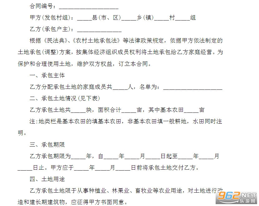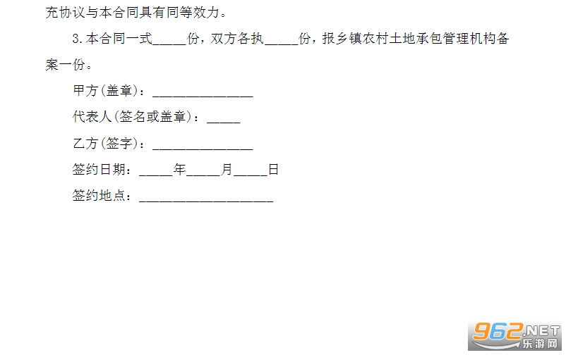 6、本协议一式 ;份,双方各执一份,发包方和乡(镇、街道)农村经营管理部门各备案一份(如有鉴证,相应增加一份)。