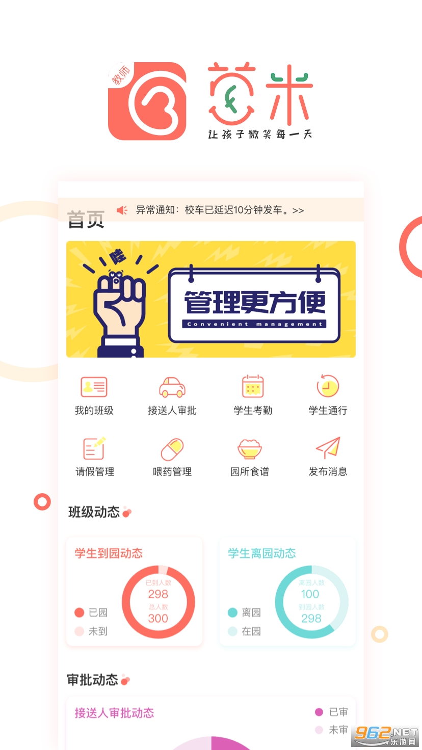 《葱米教师版》是一款帮助老师们管理孩子的app。这款软件中可以帮助教室们关注孩子的出行接送安全,家长在线互动,还有教育办公等多种功能,助力助力幼教事业。打造出一款安全优质的教育平台app,让教室更好的管理孩子!