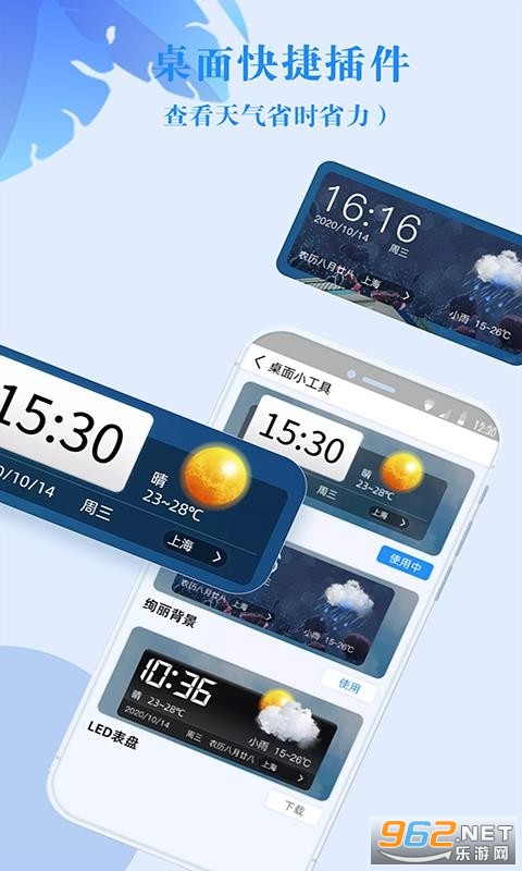 省心天气,让你不再为天气烦忧。在这里,各种的天气冷暖用户都可以早知道,有什么变化都可以及时的进行掌握,未来天气、空气质量、乡镇查询等等,超多的功能都提供给大家,用户还可以在这里设置自己喜欢的背景,也可以进行桌面快捷方面,让你看天气更加的省时省力哦!