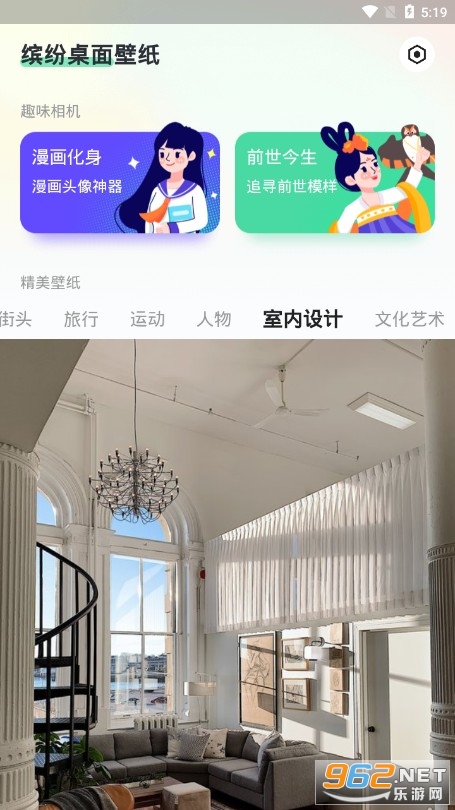 如果你觉得单一壁纸太乏味的话,可以设置壁纸自动更换,设置了这个功能之后,系统就会自动为我们更换壁纸,出来壁纸之外,这款软件还自带有相机功能,拍照一键美颜照出最美的你。