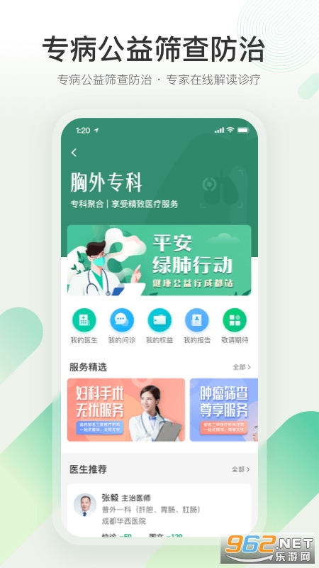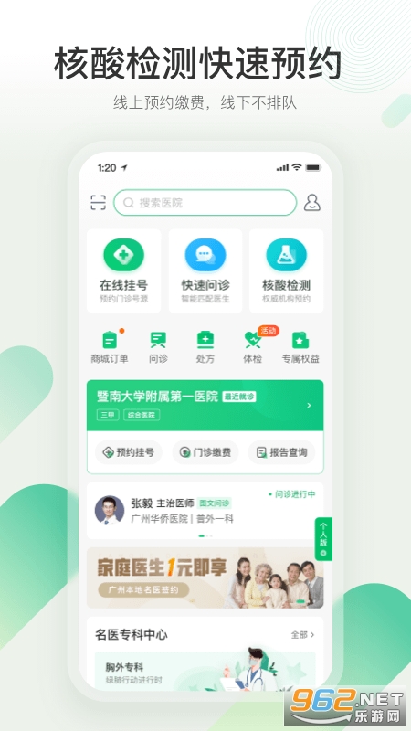 《在线挂号》医院挂号在线预约,无需排队等待;《报告查询与解读》医院检查报告在线查询与解读;《医生咨询》本地名医在线咨询;