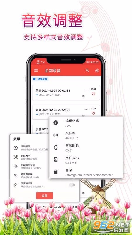 1、丰富的声音效果,该效果框中拥有跳过无声、背景音降噪以及回声消音等;