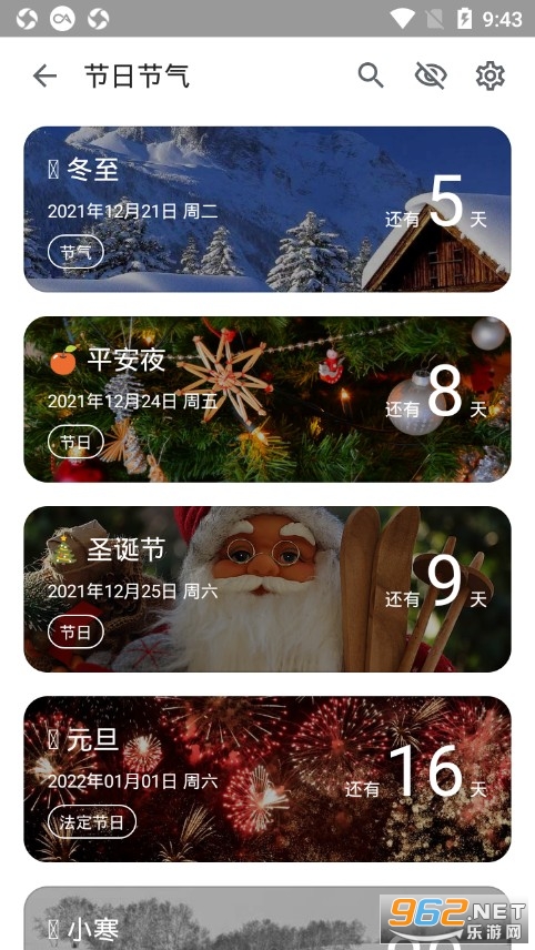 《记得倒数日app》是一款为朋友们打造的日期提醒软件,朋友们可以在软件进行自定义设置,比如自己的生日,朋友的纪念日等等,都有着详细的倒计时提醒,软件还自带一些节假日节气的倒计时,可以看到详细的日期情况,更好的进行提醒。