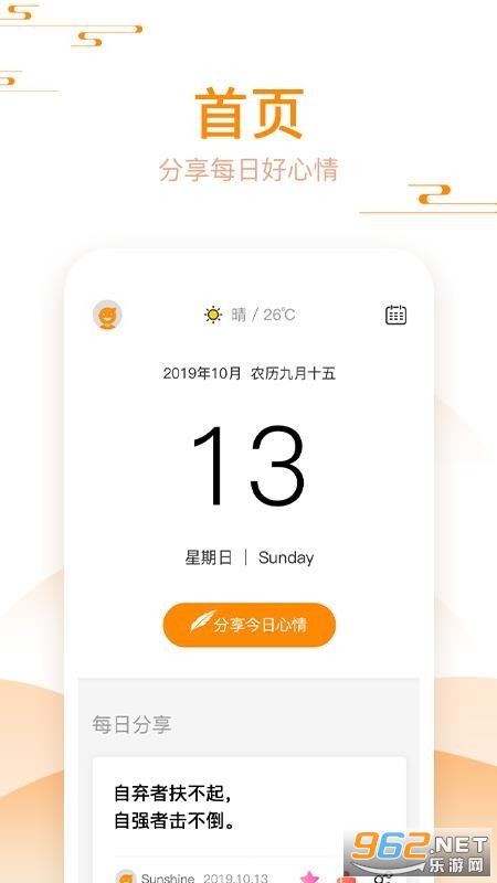 首页:分享每日好心情,让你拥有好心情,随时都可以查询日历;