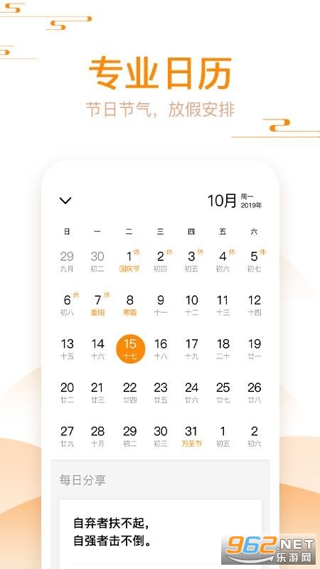 《好心情日历app》是一款非常好用的手机日历工具,这里为用户通过最好最棒的日历软件,用户可以查询当前的日历信息,让用户可以清楚的知道日历情况,选择对应的日期以后,就可以添加日程表.备忘录等内容,感兴趣欢迎来962下载试试吧!