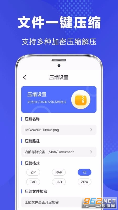 1、立即将文件压缩,使用压缩设置功能可以将文件压缩成自己想要的压缩文件;