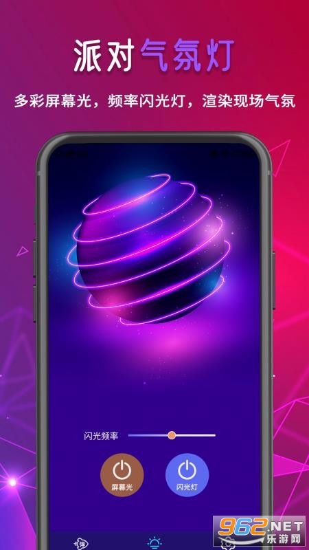 5、简单便捷的灯效控制中心,这里设置了屏幕光、闪光灯开关图标,黑釉闪光频率调节棒;