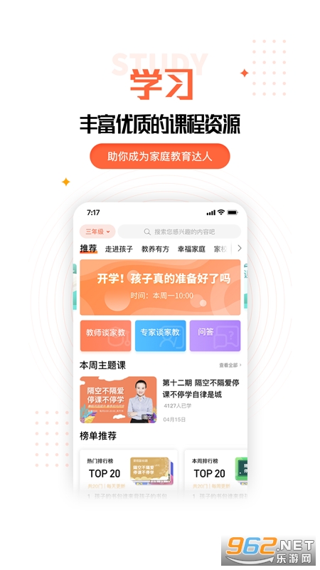 2.满足家长学习需求,提供丰富的家庭教育课程资源,为家长提供系统学习课程、优质的校研课课程与名师课程。