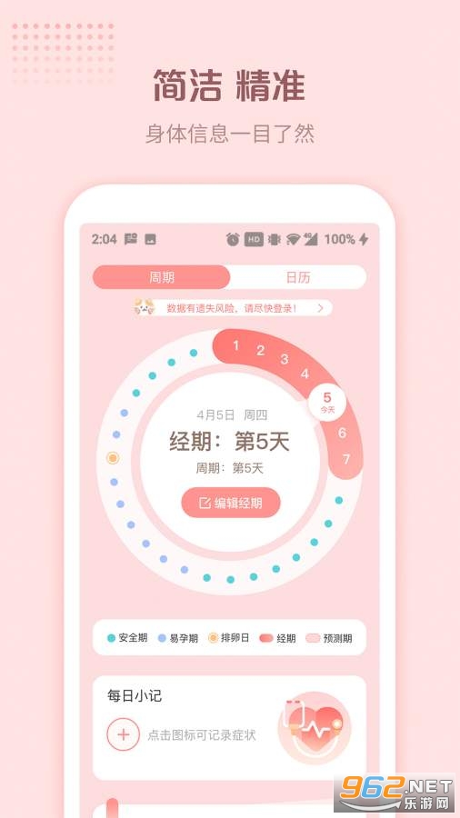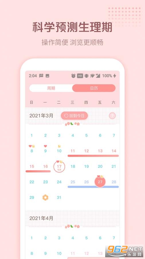 科学预测:科学预测生理周期,并贴心提醒,有备无患,安心度过尴尬时期;