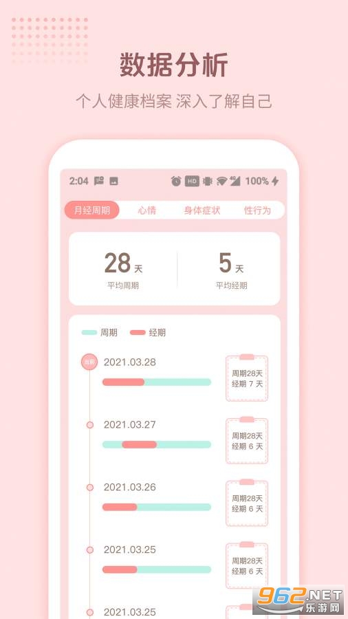 一款非常不错的女性生理周期的管理工具,通过这款软件能够精准的进行预测和记录,同时记录各种各样的信息,通过不断的对比和观察更加了解自己的身体,还有着超暖心的提示互动功能,推荐给有需要的用户。