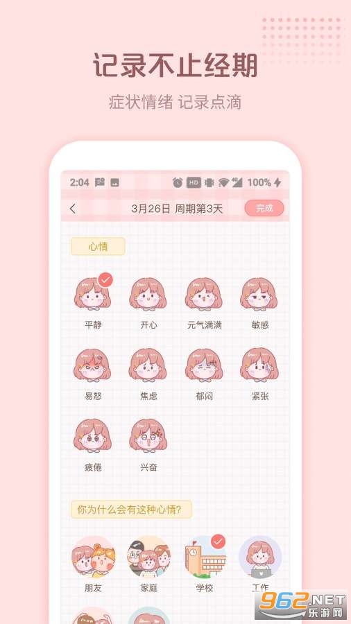 多维记录:可记录情绪、身体症状、安全期等多种事项,对比生理周期观察,让你更了解你自己;
