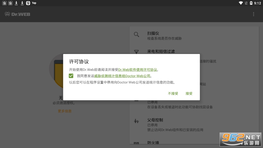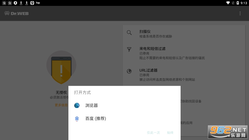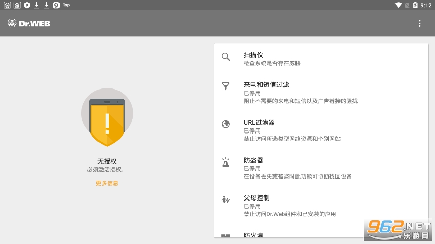 《DrWeb手机版》是一款非常新型的杀毒软件,由pc端移植到安卓端,里面有着丰富的功能,比如反病毒,URL过滤器,来电过滤器,父母控制,安全审计,防火墙等功能让大家去使用,让用户随时随地杀毒,定期扫描文件,实时保护手机安全,超级方便,需要就来下载吧!