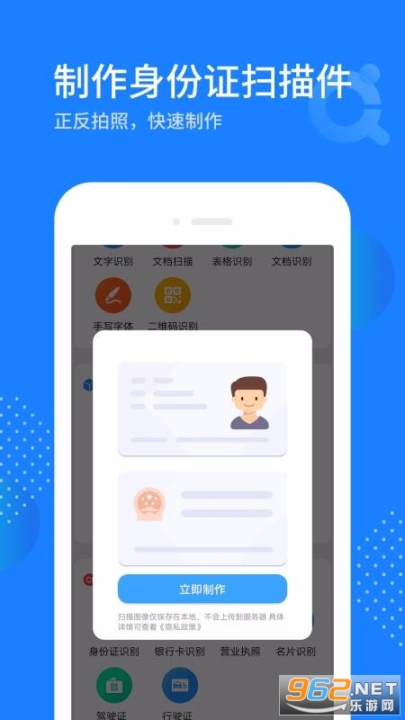 拍照识别,扫描文档,对文档进行编辑,集扫描,图片处理,文字识别,文字提取。拍照转表格,翻译于一体,满足工作需要。
