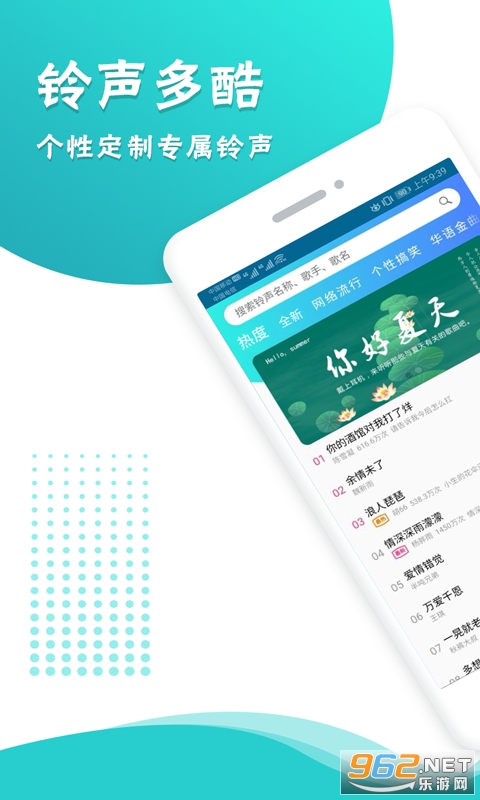 【天天有新铃】紧贴潮流,收纳时下火热、流行的歌曲铃声,还有搞笑、影视、DJ、动漫、短信铃声,乐趣无限!