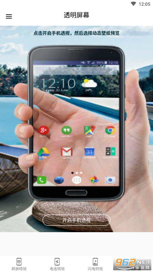 《小龙特效屏幕软件》是一款超级酷炫的特效屏幕软件,里面有着丰富并且强大的功能让大家去使用,简单的操作,用户可以选择碎屏特效,电击特效,闪电特效,透明屏幕等不同的特效屏幕使用,点击开启手机特效屏幕,让你的手机看起来更酷炫,更与众不!