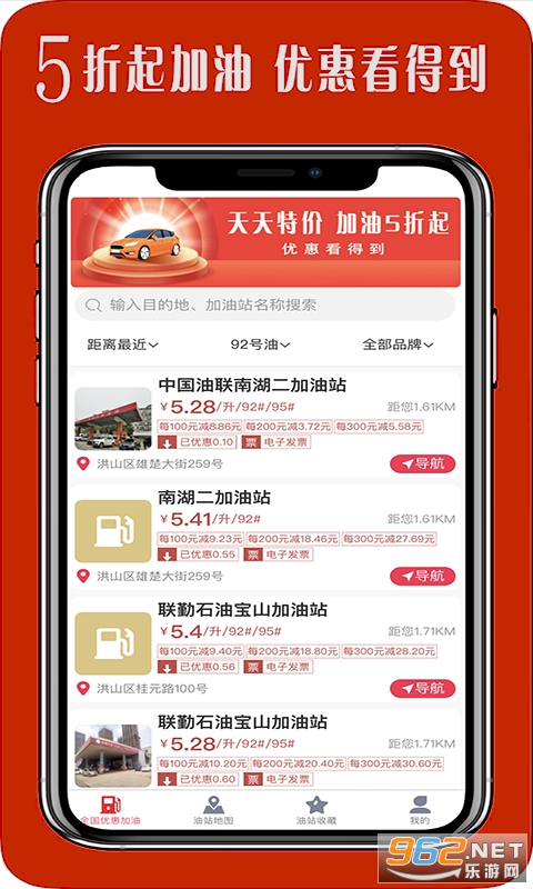 3、附近优惠油站,一键导航,地图定位,一目了然。智能推荐附近优惠油站。