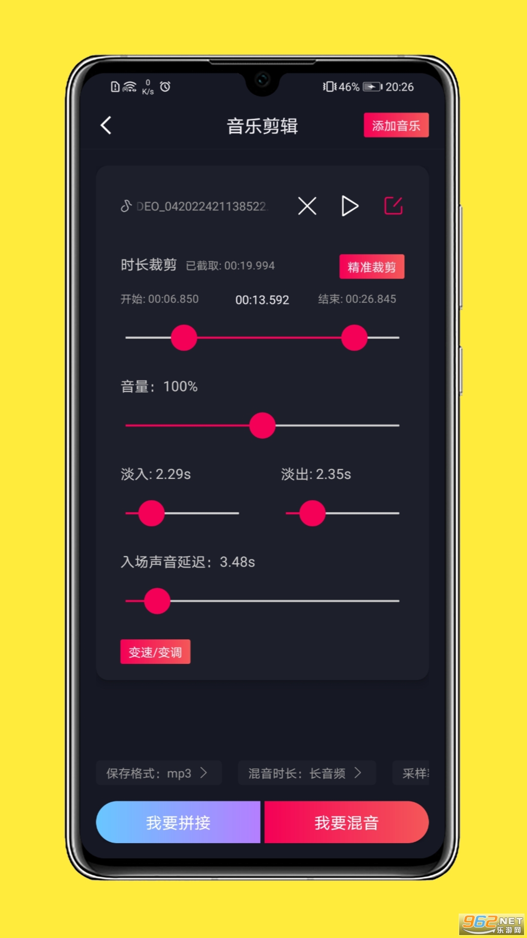 2、音频裁剪、拼接、混音、音量调整、淡入淡出,功能齐全实用性强;