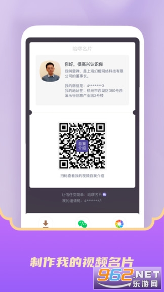 哈啰名片最新版能够帮助用纸只错一个有新意好用的视频名片。用户只要注册成会员就可以使用大量的素材并借鉴一些成功的视频名片的案例再结合自己的创意制作一个出色的视频名片,让客户更加容易了解信任你。