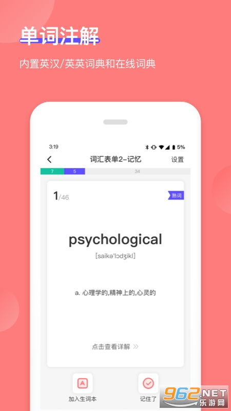 1、功能强大且便捷好用的一个手机单词学习工具,在线为各位用户提供更便捷的学习。