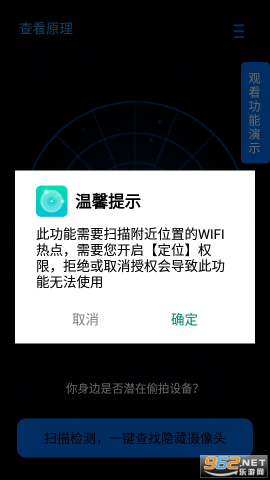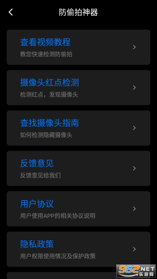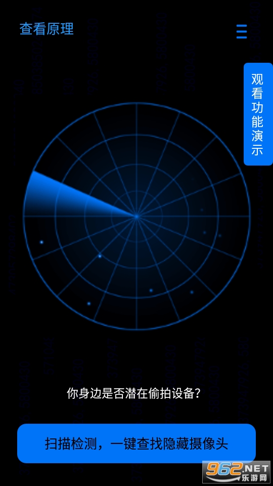 非常好用的一款软件,能够对你周围的摄像头情况进行检测,查找周围各种隐藏的摄像头,防止你在不知不觉中被偷拍,快来下载吧!