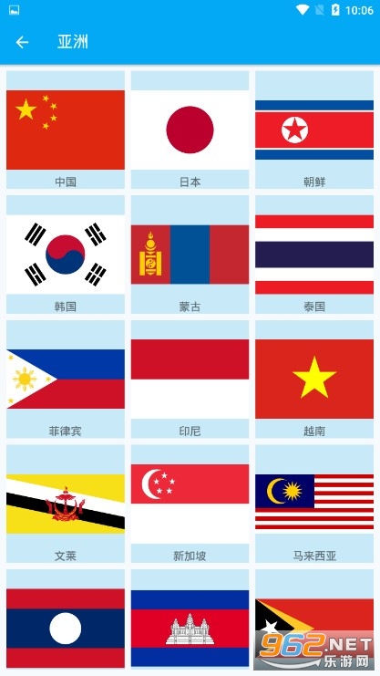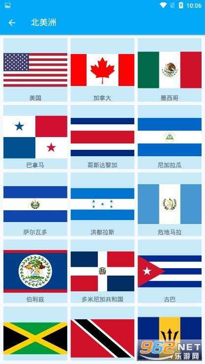 1、亚洲、非洲、北美洲、南美洲等,各大洲国家的国旗图案国旗认知app都有。