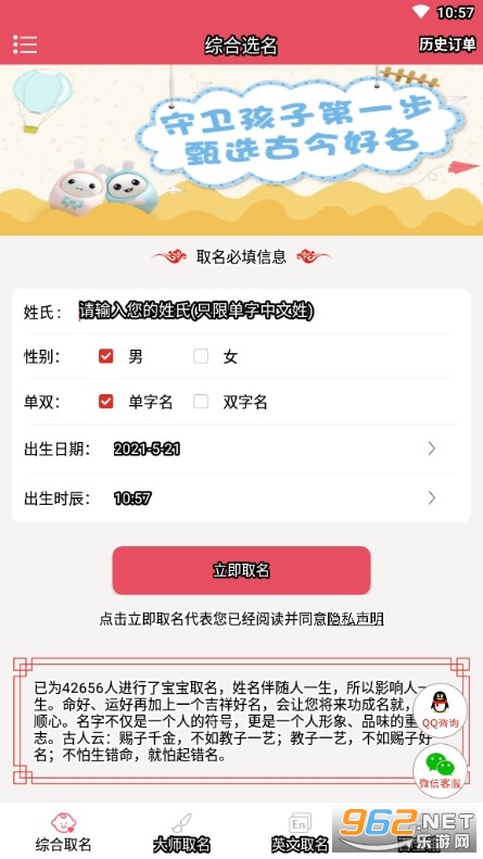 一款非常专业的取名软件,根据孩子的生辰八字取名,或者取一个有意义的名字,当然在取名之前是需要翻阅一些资料的,如果有些字不好千万不要使用,另外大家取名的时候尽量不要弄一些笔画多生僻的字。
