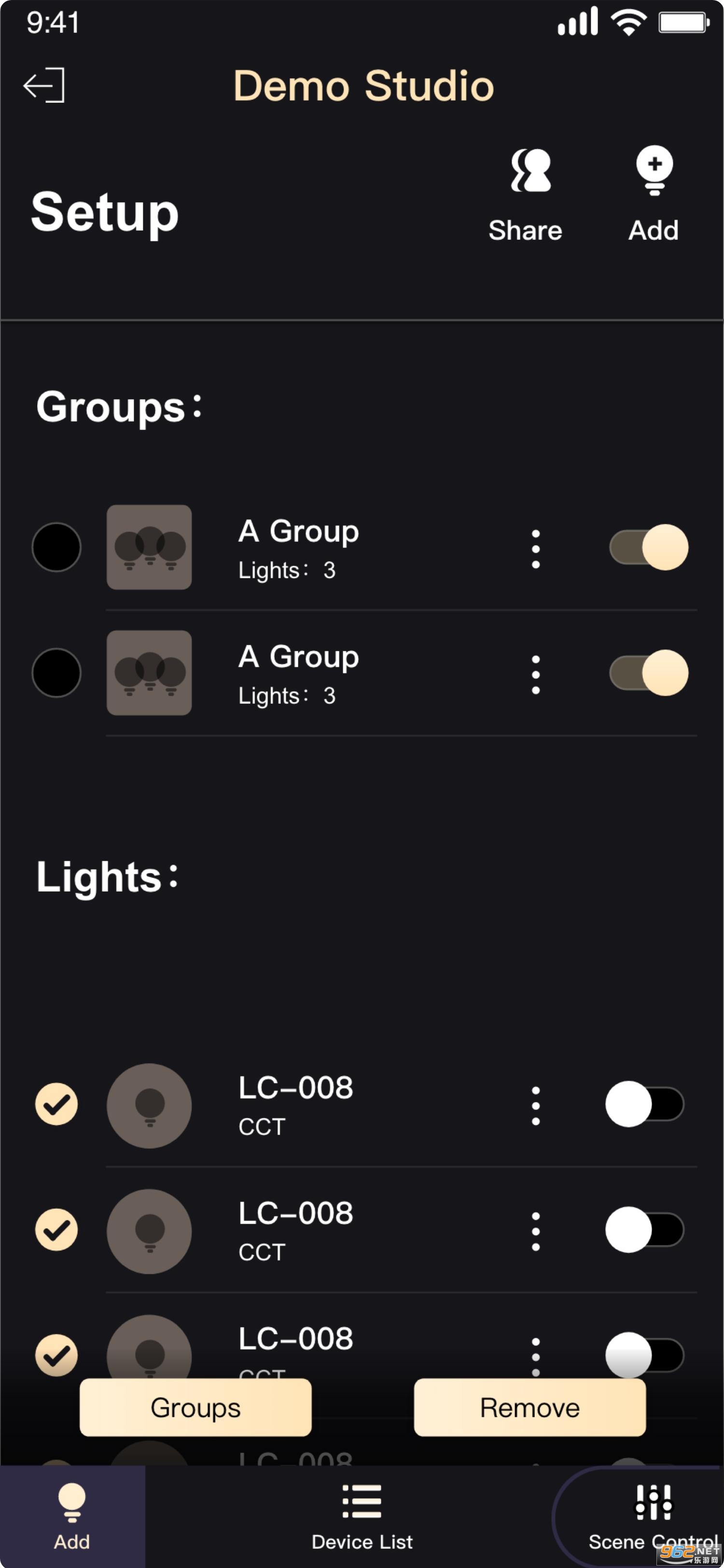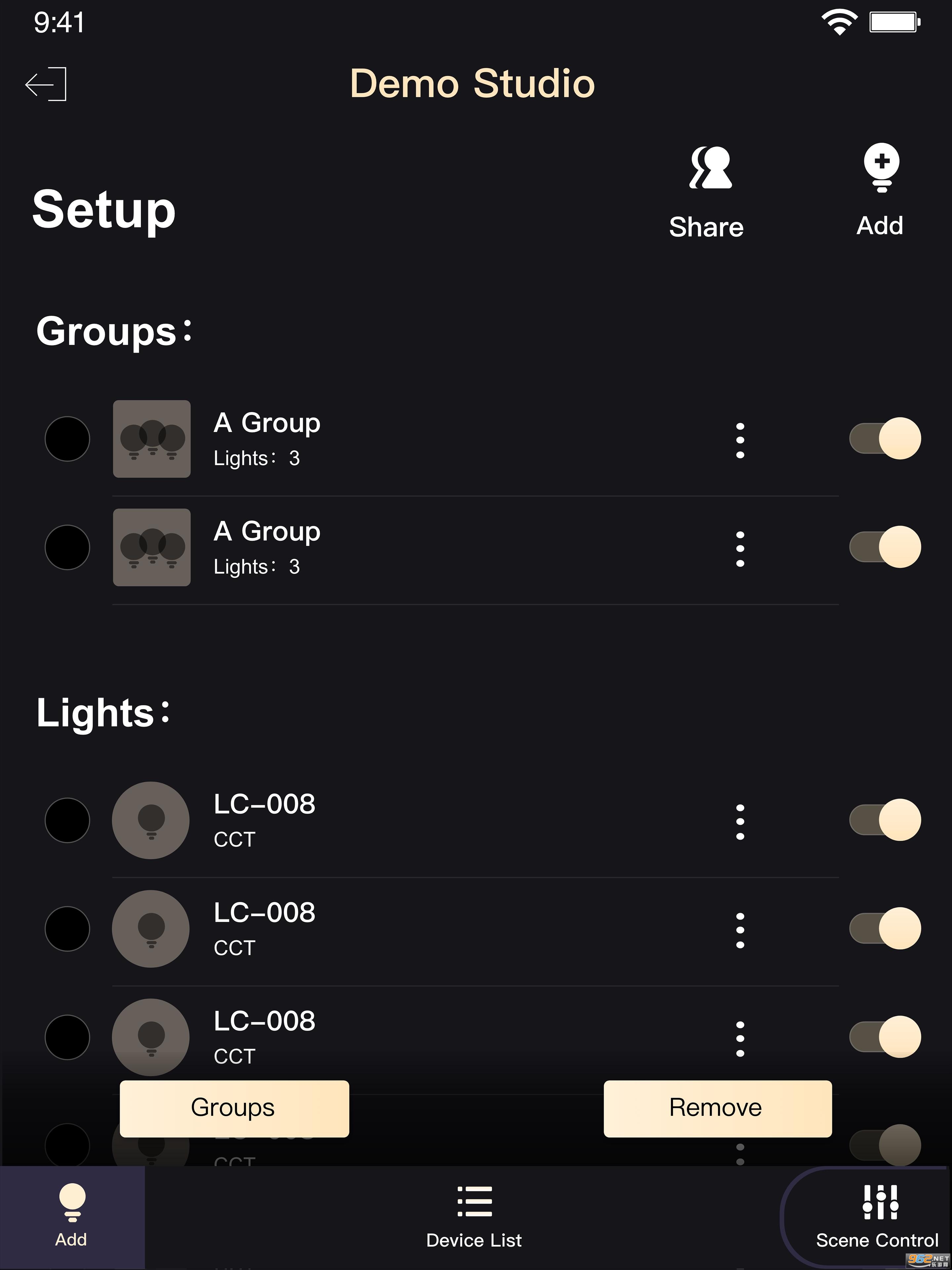 可以控制的灯光模型:单色温度灯,CCT灯,RGB灯
