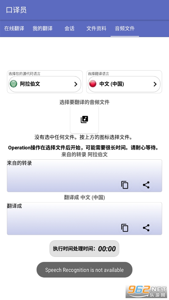 用于mp3和其他音频格式转录和翻译的音频面板。