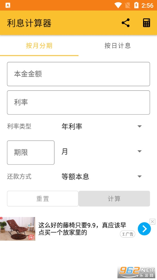 4、包含一键重置的快捷功能,能够直接将输入的数据清除干净,重新输入数据进行息费计算;