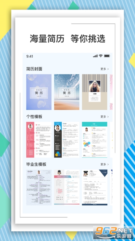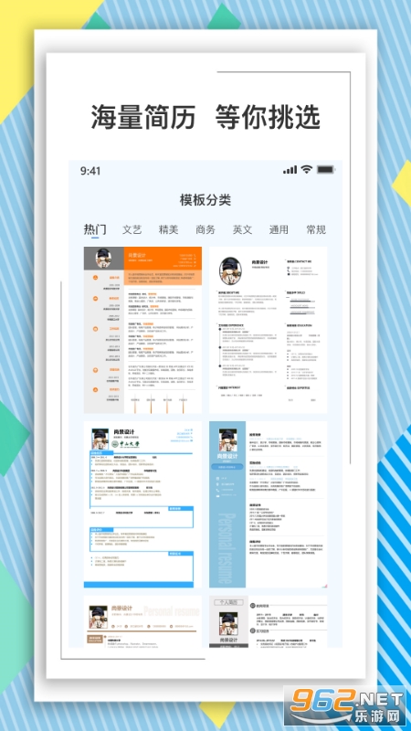 2、众多的模板可以去选择,简历会是一个展示你自己的名片;