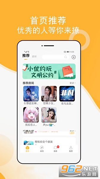 小优约玩实用的语音交友软件,丰富的玩法模式让用户可以交友,开直播一起活动或是语音聊天房间通过声音来交友治愈非常的便捷,特色的功能等待你的挑战,有需要的用户就来下载试试吧!