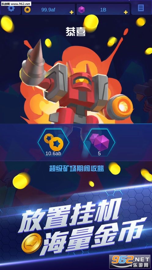一款免费的休闲放置合成游戏,炫酷的场景设计,全新的操作体验,震撼的挖矿奇兵是一款画风卡通Q萌的休闲益智类手游。游戏中拥有超过60款星际矿车和超级矿场玩法,玩家在游戏中能体验海量收获矿产和钻石的无尽快感和全球所有玩家竞争星际最强挖矿大亨!