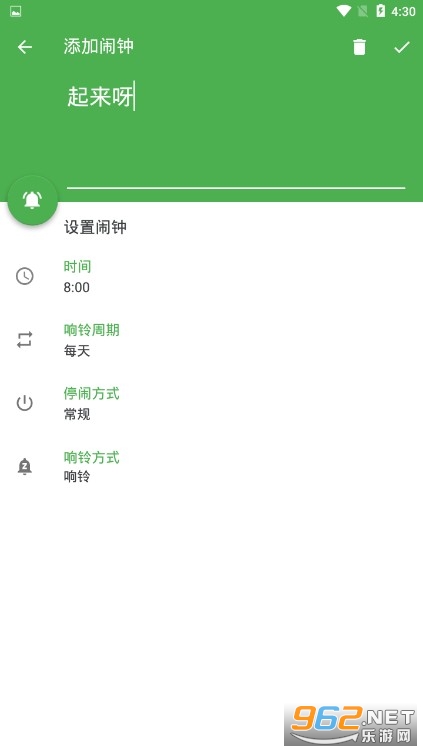相当实用的一款闹铃软件,绝对能够让你从昏睡中慢慢苏醒,可以设置随机生成题目,也可以自己设置题目,这些题目在闹钟响起时不会折磨你的,在仔细思考回答问题中,大家也会慢慢的醒过来,这样起床就非常简单了。