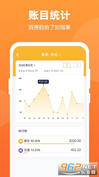 根据你的记账记录自动生成饼图和趋势图,清晰了解钱花哪儿了