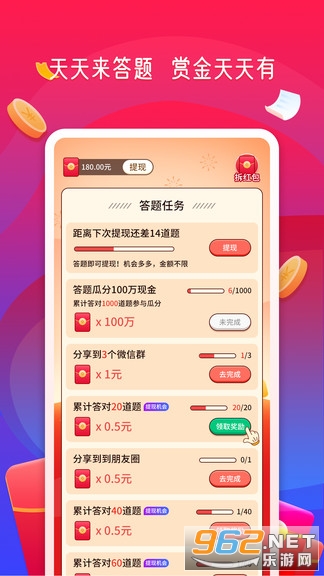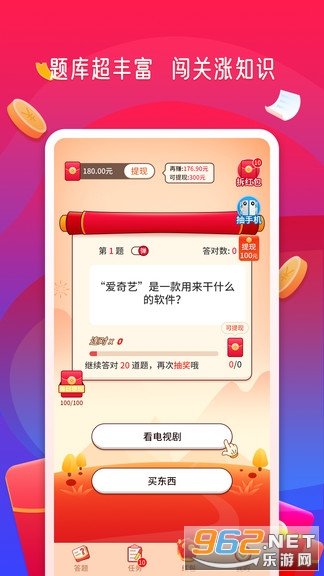 《答题赏金赛红包版》是一款通过趣味的答题闯关赢红包的游戏,海量题库闯关学习,还能得到红包。每日还有5次机会抽华为meta40。让你在这里真正的赢大奖,享受到答题赏金赛红包版带来的满满福利,下面就是小编为大家带来的游戏下载地址!